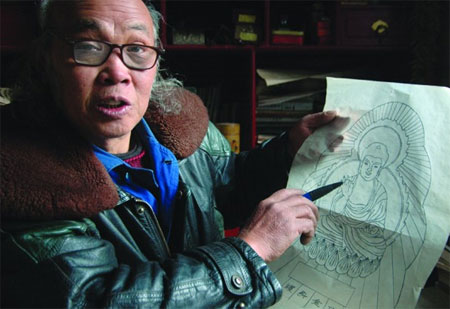 這位老人是洛陽的退休干部史洛生!懊坊ㄡ槪@可是武俠小說中常用的暗器!笔仿迳蛱旄浾咭灰娒,就給記者找出一枚針,“你看這和普通的繡花針有區(qū)別沒?梅花針的針尾較重,主要靠投擲傷人。你別小看武俠書里寫的兵器,其實(shí)古代都曾有過,我造的也多是經(jīng)過考證的!薄捌饺战鹩沟奈鋫b小說我可沒少看!”史洛生老人爽朗地笑了笑,拿出一幅“護(hù)身金佛”短兵器圖紙,講起了他造兵器的歷史。