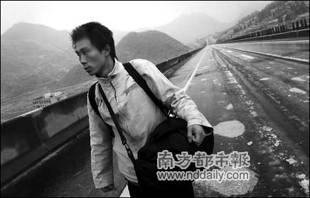 劉忠平手提一個熱水瓶在京珠高速上走了20公里。