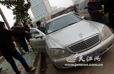 當(dāng)天上午10時許,洛陽路靠近南站廣場路口有許多等車的乘客。這時,一輛牌號為滬D-085××、價值200余萬元的頂級新款奔馳600小車停在路旁,邊上站著兩名男子,其中一人高聲叫嚷:“有沒有去武寧的?每人200元,馬上就走!”這一幕被巡查至此的南昌市政公用事業(yè)局行業(yè)監(jiān)查處執(zhí)法人員注意到了,這么高檔的車跑非法客運?