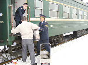“原來我們以為最多一晚上就可以到廣州,列車只準備了50多名乘務員的口糧,100多份盒飯!彪S著晚點時間一再推移,火車上開始斷糧了,很多旅客準備不足,隨身帶的干糧也越來越少,車廂內(nèi)的旅客開始躁動起來,“我們與車站聯(lián)系,發(fā)現(xiàn)這個小站也已經(jīng)斷電斷糧,最要命的是斷水了,車上1100多名旅客吃什么成了我們最先遇到的一個難題!崩柚怯赂嬖V記者,他們立即派人聯(lián)系車站,“幸運的是我們找到了一輛車,搭著我們從小路趕到縣城,采購了一大批糧食,當時路已經(jīng)冰封了,本來來回就半個小時,結果走了1個多小時!