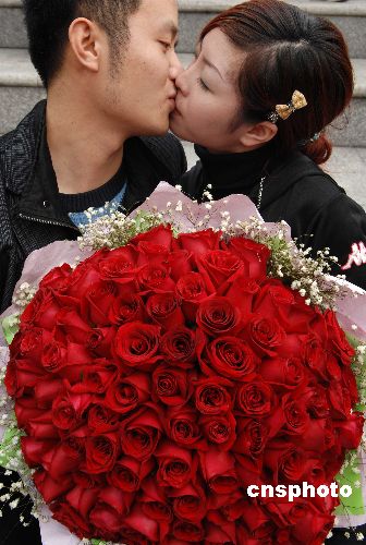 資料圖:二月十四日,深圳歡樂(lè)谷舉辦“甜蜜玫瑰之吻”特別活動(dòng),一對(duì)對(duì)情侶在玫瑰花相伴下激情相擁熱吻,表達(dá)心中的愛(ài)意,共度浪漫情人節(jié)。 中新社發(fā) 陳文 攝