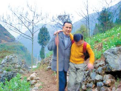 從2002年9月開始,在丹鳳村通往三溪鄉(xiāng)田家小學的崎嶇山路上,每天都會有一高一矮兩個蹣跚的身影,早出晚歸,風雨無阻走了5年。