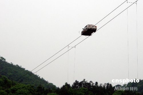 4月27日,被稱為“中國車王”的河南漢子劉鎖柱,在湖南平江縣駕駛著一輛未經(jīng)改裝的普通小汽車,在距汨羅江45米的高空上,沿著兩根鋼絲鋪成的“天路”成功行駛了230米。據(jù)介紹,這個距離目前為“中國之最”。 中新社發(fā) 鄧霞 攝