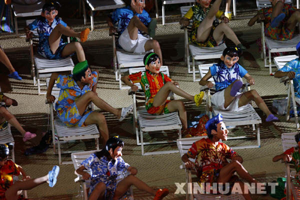 《印象·海南島》是繼北京奧運(yùn)會(huì)、殘奧會(huì)開閉幕式后,張藝謀、王潮歌和樊躍創(chuàng)作出的首個(gè)印象系列作品,也是繼《印象·劉三姐》、《印象·麗江》雪山篇和《印象·西湖》之后的第四個(gè)印象系列作品。《印象·海南島》將試演一個(gè)月,經(jīng)過修改及完善,于4月中旬舉行的博鰲亞洲論壇期間正式公演。新華社記者 李明放 攝