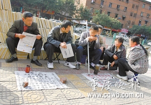 “江湖人稱李半仙,算了10多年,包準(zhǔn)!”昨日下午,渝中區(qū)解放西路66號門前,一位算命先生這樣推銷自己。旁邊五六個算命先生出來拆臺:“啥子半仙,前幾個月明明還在擦皮鞋!”
