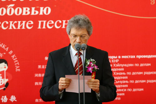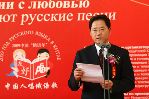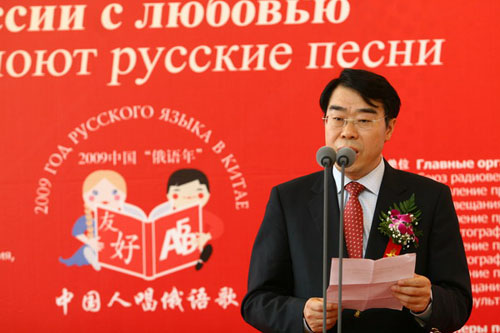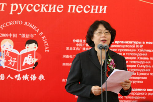 國際在線消息:(記者 衛(wèi)寧)2009年5月26日,由國家廣播電影電視總局主辦,中國國際廣播電臺、中央人民廣播電臺、北京電視臺聯(lián)合承辦的“情動俄羅斯——中國人唱俄語歌大型選拔活動”在北京俄羅斯聯(lián)邦駐華使館舉行了盛大的啟動儀式和新聞發(fā)布會。教育部副部長郝平、外交部副部長李輝、國家廣電總局副局長田進(jìn)、中國人民對外友好協(xié)會會長陳昊蘇、俄羅斯駐華大使拉佐夫和中國國際廣播電臺臺長王庚年以及活動各大分唱區(qū)承辦方代表、中俄兩國媒體記者和俄語界、文藝界代表等150余人共同出席了啟動儀式和新聞發(fā)布會。