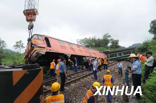 由于持續(xù)強(qiáng)降雨影響,7月29日4時(shí)30分,襄樊至湛江1473次旅客列車運(yùn)行到焦柳線廣西境內(nèi)融水縣1568公里加261米處時(shí),因線路路塹發(fā)生坍塌落石,造成客車1473次機(jī)車及機(jī)后1、2位車輛顛覆,3、4位車輛脫線。