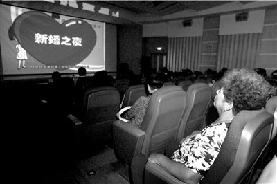 昨天,觀眾在電影院觀看以計生知識為主題的動漫短片。昨天,記者從海淀區(qū)計生委了解到,即日起,海淀區(qū)的每個影劇院內(nèi),每場電影放映前都會插播一段計生短片,預(yù)計明年年底前,此計生短片播放數(shù)量將達到萬場。內(nèi)容包括:避孕方式選擇、免費婚檢等。(記者歐陽曉菲 李秋萌攝影報道)