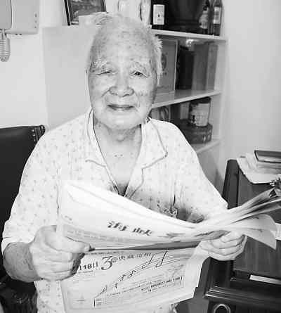 104歲的周東君老人在看報(bào)。