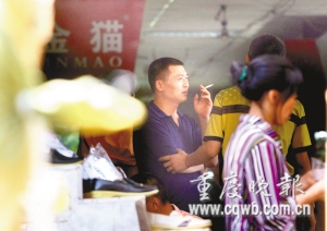 重慶朝天門一些商場(chǎng)內(nèi)不乏吞云吐霧的顧客 記者 羅川 攝