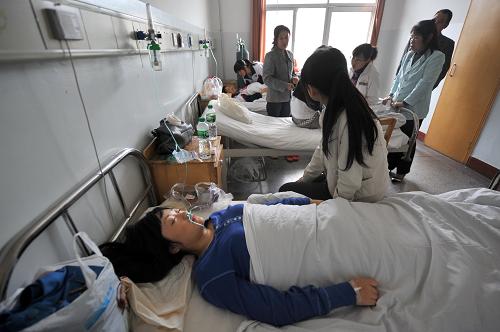 9月8日,蘭州市商業(yè)學(xué)校中毒學(xué)生在醫(yī)院接受治療。新華社照片,記者聶建江攝。