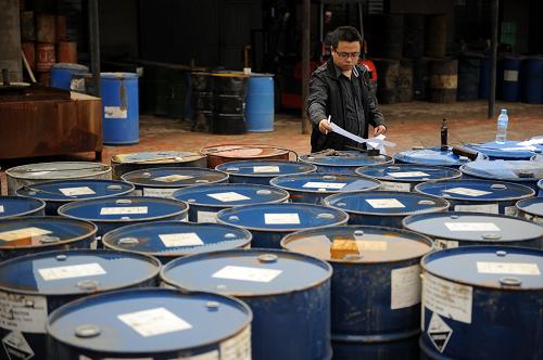 9月8日,蘭州市政府有關(guān)部門工作人員在查封發(fā)生泄漏化工廠的原料。新華社照片,記者聶建江攝。