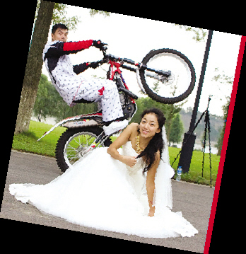 新婚的馬濤昨天接受了本報的采訪,對于這場讓大家津津樂道的婚禮,他自己也非常得意,“跟最愛的人結(jié)婚,我也想融入我們最執(zhí)著的東西。技巧自行車、摩托車,還有柔術(shù)格斗,我們玩的都是現(xiàn)在最流行的國際頂級極限運動”。