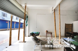 樓房主梁斷裂,開發(fā)商竟用木棒支撐。