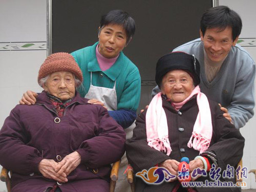四川樂(lè)山市中區(qū)青平鎮(zhèn)傳有一段佳話:寶興村的王云清大孝感天,贍養(yǎng)的兩位百歲母親因此福壽延年,身康體健。母親李叔華,94歲,岳母李玉容,100歲,兩位壽星竟同降一屋。12年來(lái),這對(duì)親家母在子孫們的供養(yǎng)下形同姐妹,朝夕相處,盡享天倫之樂(lè)。