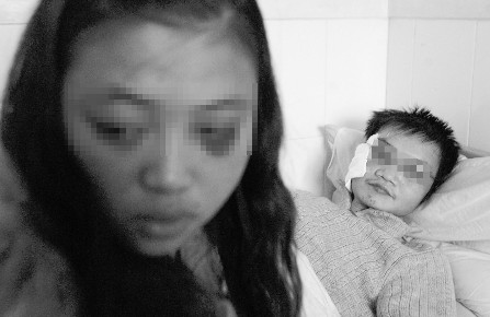 昨日下午,郫縣人民醫(yī)院外科病房內(nèi),面容憔悴的吳慧明靜靜地躺在床上,他右耳處粘滿紗布,雙眼青紫腫脹。病床邊,左眼青紫紅腫的王英蘭,正輕輕地按摩著吳慧明剛剛打完點(diǎn)滴的左手背。四目相對間,滿是愛意。情侶間的溫馨一幕,令病友們感動。但他們并不知道,幾天前吳慧明竟然遭遇了“似乎死過一次”的痛苦……