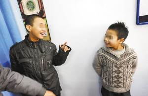 兩個孩子在派出所談笑風生。