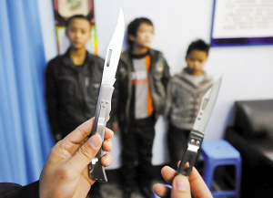 小云姓魏,11歲的他身高只有1米2,一張娃娃臉,看起來根本不像一個盜竊團伙骨干,更像是一個小學生。身上衣著單薄,長期的流浪生活還使得他感染了疥瘡!八昙o雖小但很不簡單,除了盜竊,還伙同其他流浪兒,多次持刀搶劫婦女和學生!”反扒支隊副支隊長周濤掏出了一把8厘米長的折疊刀,這是從小云身上起獲的。
