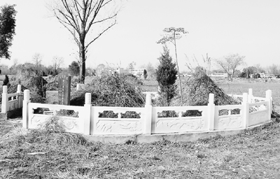 今年(2009年)陰歷十月初一,上墳的人很多,麥田里到處煙塵繚繞。我們?cè)?12國(guó)道旁鎮(zhèn)平縣的麥地里看到,造型各異、占地面積不等的座座墳?zāi)谷绱汗S一樣冒出來(lái),間隔幾米、十幾米,綿延10多公里。