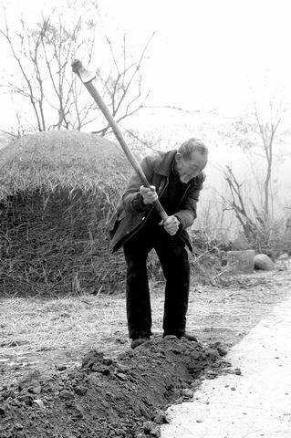 見到劉志光老人時(shí),老人正揮鎬在自家房前挖自來(lái)水管道。原來(lái),村里對(duì)原有老化的自來(lái)水管道進(jìn)行改造,老人閑不住就自己干起來(lái)。如果不是同行的人介紹,誰(shuí)也不敢把他當(dāng)成年逾百歲的老人。