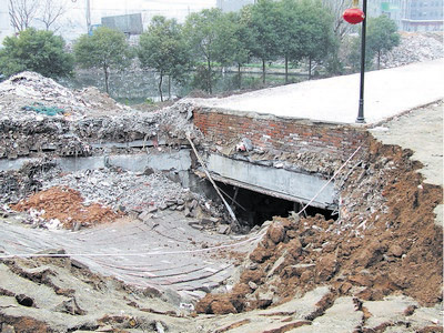 昨日下午3時(shí)許,河西天馬安置小區(qū)菜市場(chǎng)附近,一條小區(qū)道路發(fā)生塌方,近6米長(zhǎng)的路面在瞬間塌陷二三米,幸好事發(fā)時(shí)無(wú)人經(jīng)過(guò)該處,沒(méi)有造成人員傷亡。