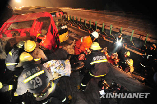 新華網(wǎng)武漢1月10日電(記者李鵬翔)湖北省交警總隊(duì)10日下午公布最新情況,9日晚發(fā)生在(武)漢十(堰)高速棗陽段的連環(huán)撞車事故中,6人因撞車死亡,1人情急之中跳橋身亡,14人受傷。