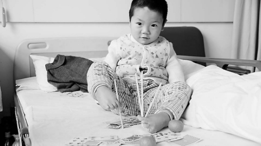 5歲的小濤坐在省立同德的病床上,幾秒鐘,就用兩只腳趾把一根一次性衛(wèi)生筷折成了三段。同病房的阿姨看得目瞪口呆,小濤的媽媽吳女士半是高興半是心酸:如果小濤能和正常孩子一樣,她寧可兒子沒有這份絕技。