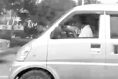 圖為邊開車邊吃面的司機(jī)