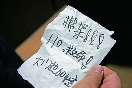 紙片是從6樓飄下的,上面用黑筆寫著“綁架。!110,救命!大門邊604室”。