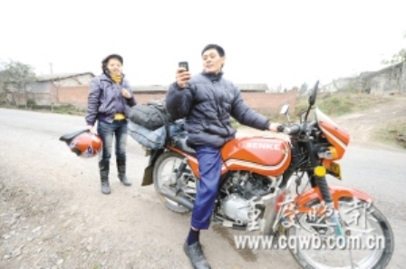 當(dāng)天上午,丁小兵買了一輛摩托車,把兩件行李綁在后座上,載著妻子踏上1400公里的回家路。為防迷路,他花1600元買了一部帶GPS衛(wèi)星導(dǎo)航功能的手機。