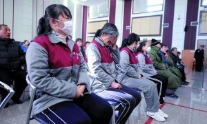 昨日上午,法庭內(nèi)的旁聽席上坐了50余名旁聽者,據(jù)了解,其中多為被告人家屬。上午10時(shí)5分,31名被告人排隊(duì)進(jìn)入法庭。