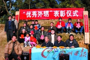 “這次我把中央文明辦提出的‘尊老愛幼、男女平等、夫妻和睦、勤儉持家、團(tuán)結(jié)鄰里’作為‘優(yōu)秀外甥’的評(píng)選條件。9名外甥都達(dá)到了這一條件,他們都獲得了‘優(yōu)秀外甥’的榮譽(yù)!蓖跤懒颊f。
