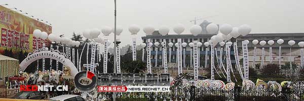 白色的氣拱門、白色的升空大氫氣球,氣球下掛著白底黑字的長條幅,條幅上是一幅幅挽聯(lián)……如此熱鬧的陣勢,并不是拍攝電影的場面,帖子說據(jù)稱是衡陽某房地產(chǎn)商母親去世的宏大祭奠場面,是在華新開發(fā)區(qū)立交橋旁拍的,并感慨說,“看看人家這排場,才知道大操大辦是什么概念!”