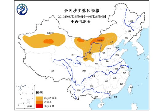 中央氣象臺3月22日06時發(fā)布沙塵暴藍(lán)色預(yù)警: