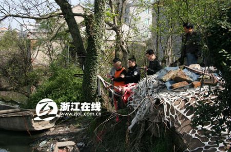 22日傍晚,魯公橋社區(qū)的村民方某在村后的小河里劃船,靠岸時,發(fā)現(xiàn)水里浮上來一個紫紅色的包裹,用船槳劃拉一下,竟然飄出了幾縷毛發(fā),方某趕緊報(bào)警。