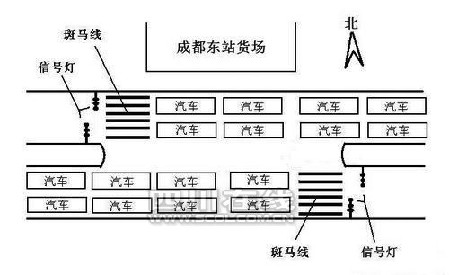為驗證這一說法,記者來到了位于駟馬橋路的成都東站貨場——“雷人斑馬線”真的存在。這條“Z”字形的斑馬線缺口長達5米,要過馬路,必須從右邊的斑馬線走到路中間,再順著車流,走到左邊的斑馬線上。