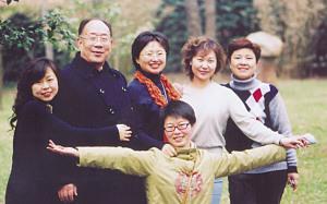 陳小姐(前排張開手臂者)和父親以及好友的合影。陳小姐供圖