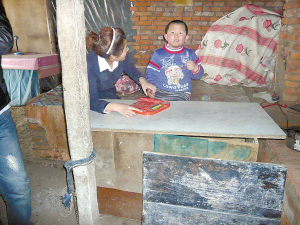 昨日一早,記者就隨同自閉癥學(xué)校的王校長(zhǎng)驅(qū)車來到家住德惠市永青村1社的小吉家,小吉的家在一個(gè)大棚里。走進(jìn)頭一個(gè)屋子,一個(gè)用汽車輪胎做的秋千,就是小吉的玩具,里面還有個(gè)屋子,輕輕掀開用塑料做的門,門口有一個(gè)用來支撐大棚的木柱子,上面有鐵鏈子、繩子,鐵鏈上有大鎖頭,旁邊就是一個(gè)破舊的寫字臺(tái),狹小的屋內(nèi)只有一鋪又臟又暗的炕,地面上都是被翻過的土地,走起路來屋子全是灰。這個(gè)用來種蔬菜的大棚,成了小吉生活的住所,那個(gè)鏈子和鎖頭成了小吉心中永遠(yuǎn)的痛。