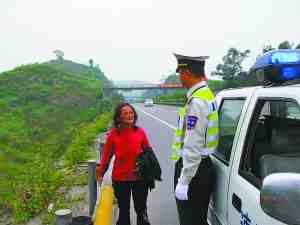 前天上午,高速路執(zhí)法人員發(fā)現(xiàn)了沈孝蓮,并送她到涪陵。(記者 杜海)