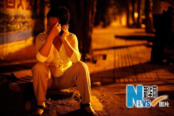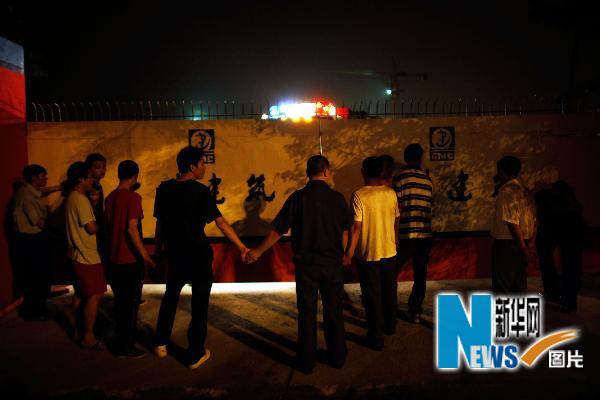 5月9日凌晨,家屬在發(fā)生事故的工地門口等待消息。新華社記者盧漢欣攝