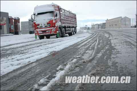 昨日(5月12日)下午開始青海南部出現(xiàn)大范圍雨雪天氣,其中214國(guó)道清水河段遭遇了暴雪。截至今日08時(shí),降雪中心清水河的降雪量為16.8毫米,積雪深度15厘米,氣溫在零下2.1℃左右,214國(guó)道巴顏碦拉山口至歇?jiǎng)?wù)段路面積雪嚴(yán)重,部分路段有結(jié)冰,加之能見度較差,行車速度和行車安全都受到較大影響。