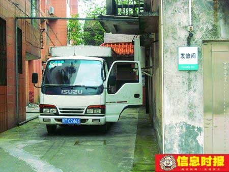 昨日中午,記者在官窯醫(yī)院時,南海殯儀館的車停在太平間門口。羅陽輝 攝