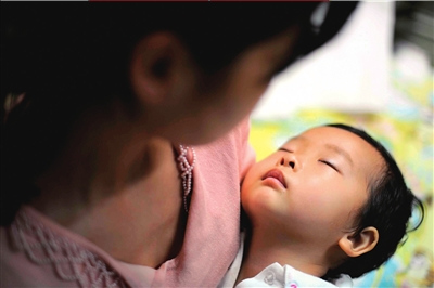 朵朵在母親的懷中熟睡。記者 張沫 攝