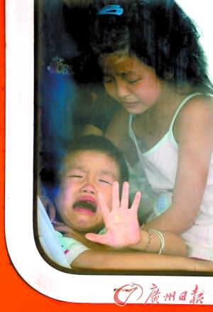 來穗與父母團聚的留守兒童乘火車即將離開時,撕心裂肺地哭叫:“要爸爸!要爸爸!”記者海國 攝