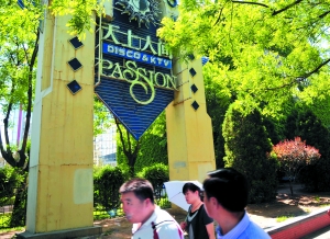 位于北京東三環(huán)邊的“天上人間”標(biāo)牌。5月11日夜,這家“被神話”的夜總會(huì),因存在有償陪侍被有關(guān)部門勒令停業(yè)6個(gè)月。樊甲山 攝