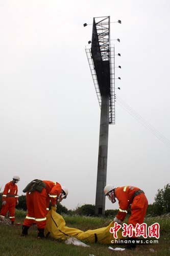 15分鐘后,6名官兵攀爬到了22.5米高的鐵架上。通過近距離查看發(fā)現(xiàn),死者為一名男性,目測(cè)估計(jì)身高在1.70-1.75米之間,外面套著一身運(yùn)動(dòng)衣,里面還穿著棉毛衫和棉毛褲。尸體的腐爛程度非常高,已經(jīng)面目全非。