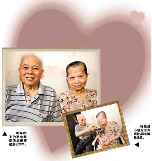 26年前,妻子因腦溢血而癱瘓,如今已是85歲高齡的駱章林二話不說(shuō),默默擔(dān)負(fù)起照顧妻子的重任。