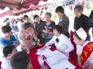 寧波康復(fù)醫(yī)院組織的廣場(chǎng)睡眠義診活動(dòng)上,咨詢(xún)市民源源不斷 記者 王博 攝