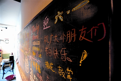 懷舊餐廳中充滿童年記憶的黑板報。本報記者 潘之望 攝