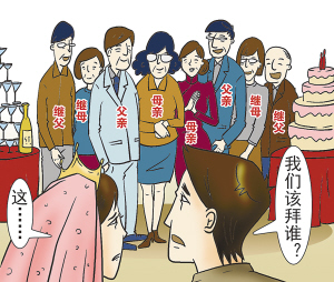此帖一發(fā),一石激起千層浪,引來不少“80后”網友跟帖大倒苦水。生于1985年的網友“amazon1220”感嘆,他和女友的父母都是離異后再婚,雙方家長加起來共有8個,婚禮上若是將他們全部請上臺,場面蔚為壯觀?墒牵膫爸媽都得罪不起,稍有不周,就會讓老人傷心難過。到底該如何安頓他們?煞是為難。